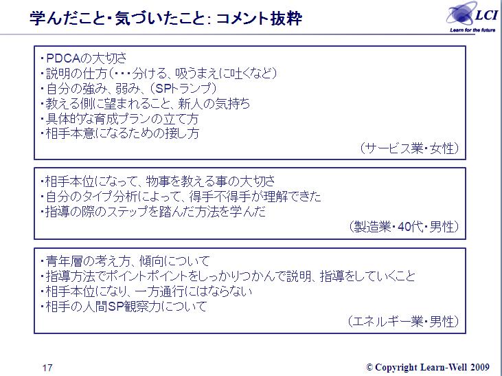 以上、09年度「OJT指導員研修」参加者約1000名の声をご紹介しました。