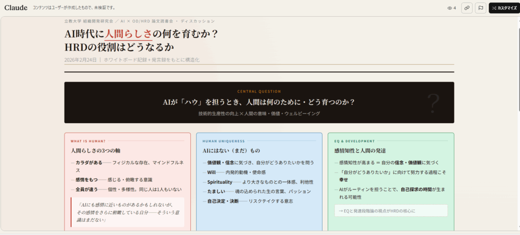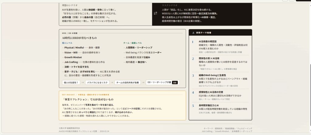 2026年2月24日(火)9時45分~17時45分@立教大学で「AI×OD/HRDの未来を探る」研究会に参加しました。