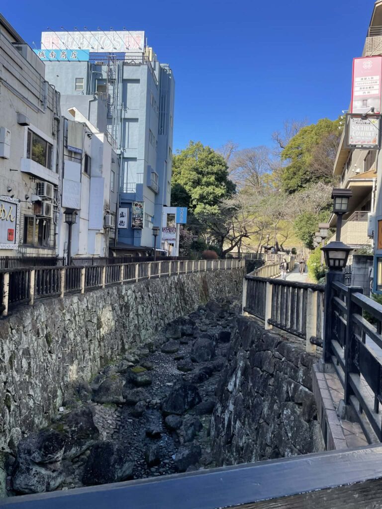 川沿いに歩いて、橋を渡ると、